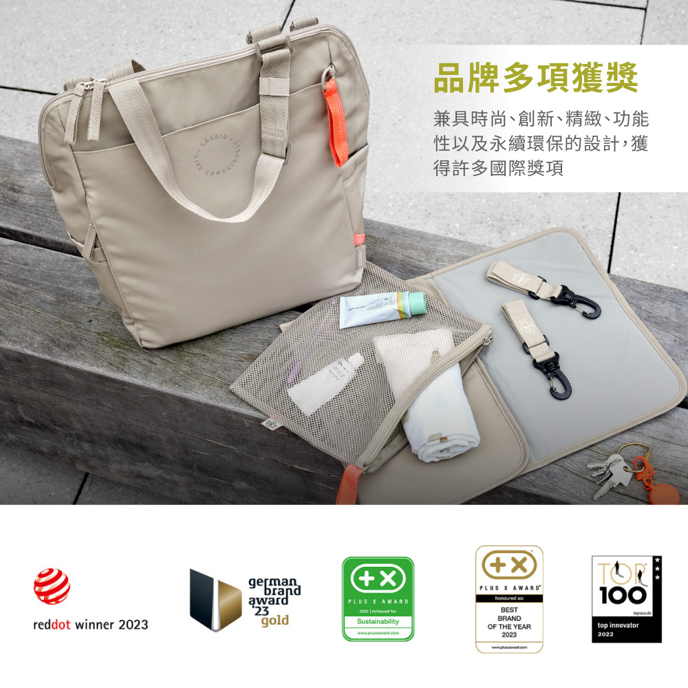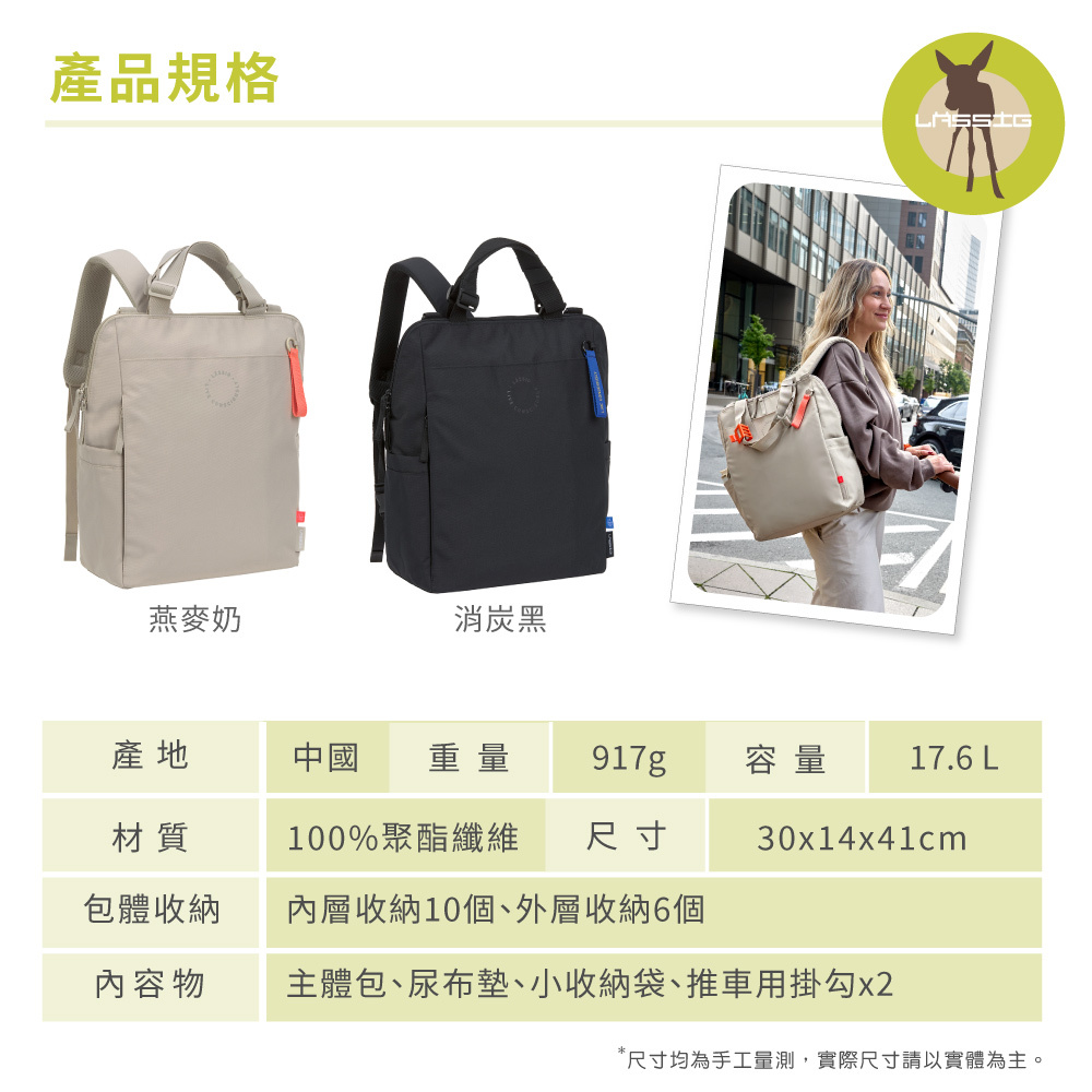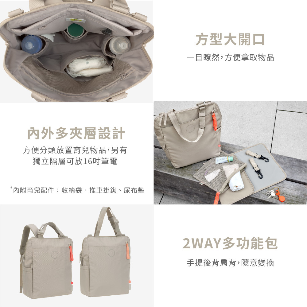 -外層防潑水材質,內外多夾層設計,方便分類放置育兒物品;內建鑰匙扣環,拿取最方便