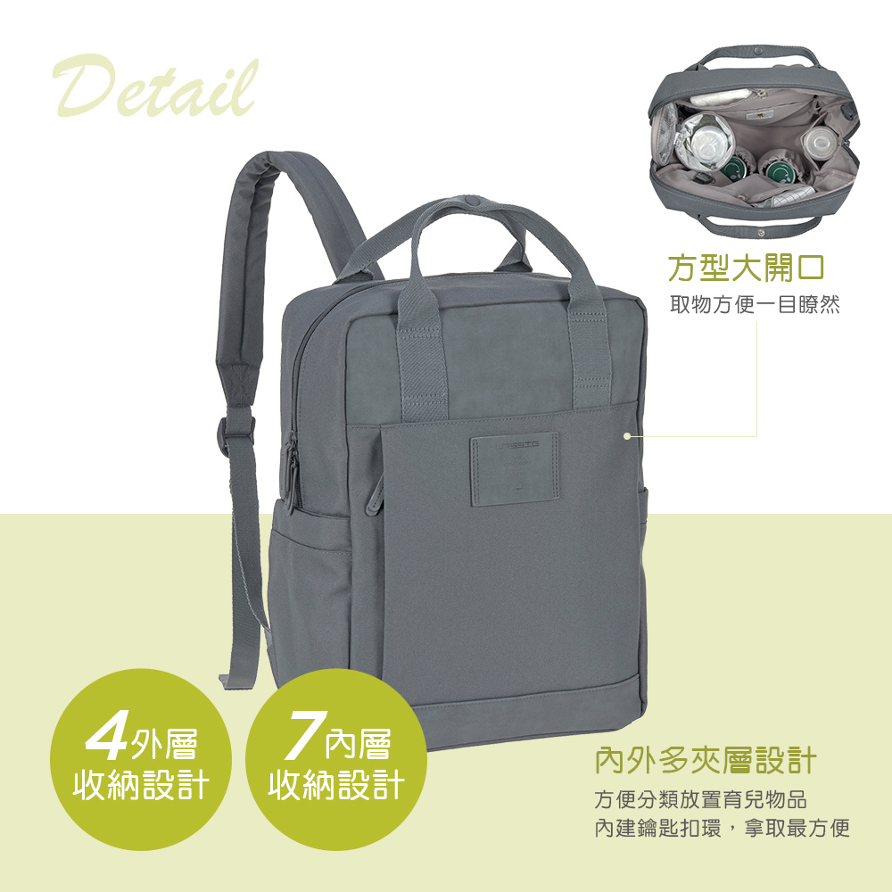 -內外多夾層設計(外層:4個;內層:7個),方便分類放置育兒物品;內建鑰匙扣環,拿取最方便
