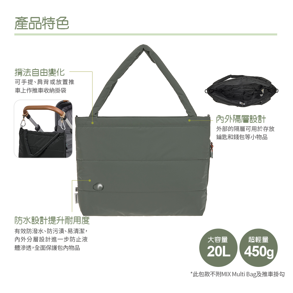 ‧可另與 MIX Multi Bag 結合成為一款井然有序的換尿布包,多夾層設計,方便分類放置育兒物品。