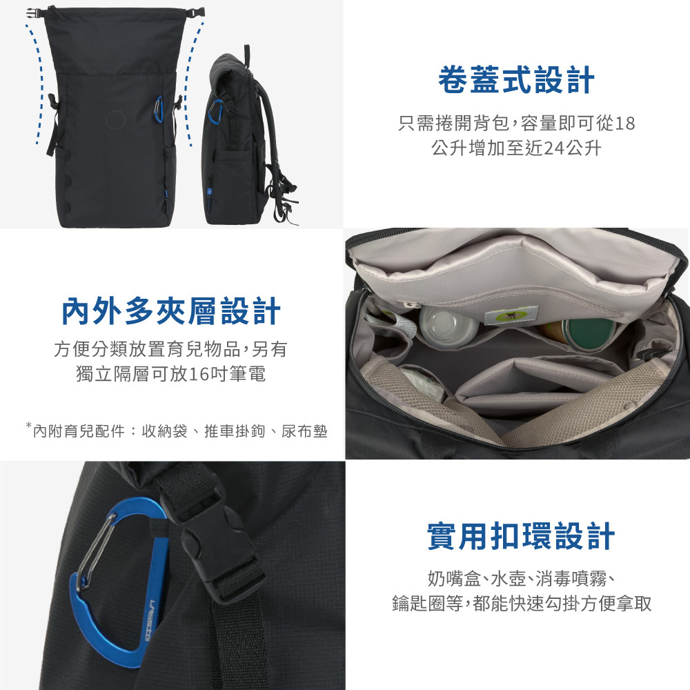-只需捲開背包,容量即可從18公升增加至近24公升