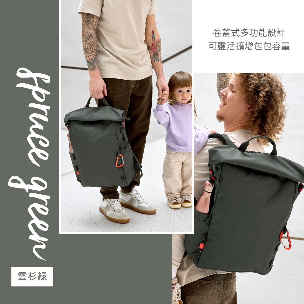 純色卷卷雙開口後背媽媽包(雲杉綠)