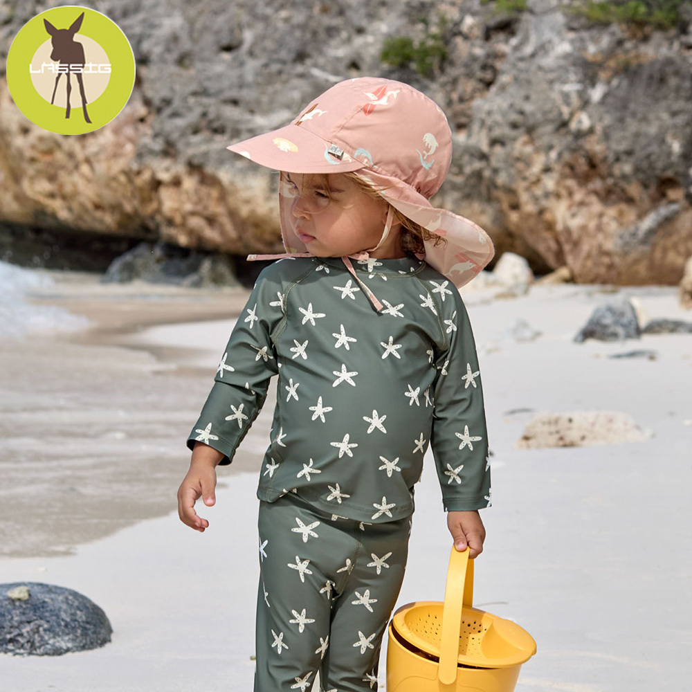 全新採用綠色環保再生聚酯纖維製造,100%安全無毒材質,給孩子一個美好的地球;每件泳衣均是以回收寶特瓶為原料,為經過寶特瓶清洗分類粉碎等步驟製成酯粒,並加工再製而成的紡織用紗;抗UV紫外線防曬系數UPF50+,可保護寶寶不受紫外線傷害;布料透氣快乾,以確保寶寶肌膚舒適;同時彈性絕佳,讓寶寶超好活動;扁平接縫車工,減少接縫處摩擦寶寶肌膚;LASSIG獨家開發,全新超強三層導流結構,防漏超強性,外層防水,內層吸濕透氣不回滲,不須再穿尿布;認證PETA純素認證標誌(PETA Approved Vegan),代表其紡織品生產中不使用動物成分,沒有任何動物在製造過程中受到傷害