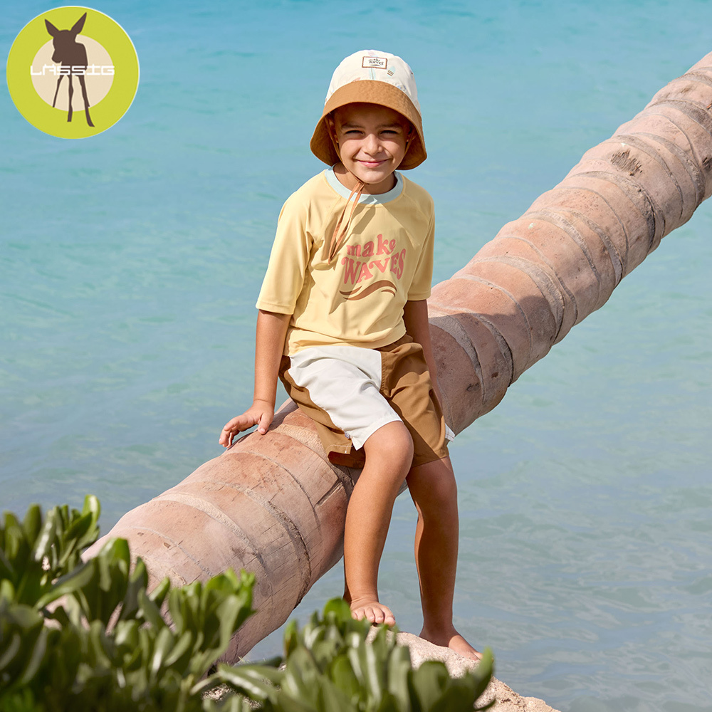 全新採用綠色環保再生聚酯纖維製造,100%安全無毒材質,給孩子一個美好的地球;每件泳衣均是以回收寶特瓶為原料,為經過寶特瓶清洗分類粉碎等步驟製成酯粒,並加工再製而成的紡織用紗;抗UV紫外線防曬系數UPF50+,可保護寶寶不受紫外線傷害;布料透氣快乾,以確保寶寶肌膚舒適;同時彈性絕佳,讓寶寶超好活動;扁平接縫車工,減少接縫處摩擦寶寶肌膚;LASSIG獨家開發,全新超強三層導流結構,防漏超強性,外層防水,內層吸濕透氣不回滲,不須再穿尿布;認證PETA純素認證標誌(PETA Approved Vegan),代表其紡織品生產中不使用動物成分,沒有任何動物在製造過程中受到傷害