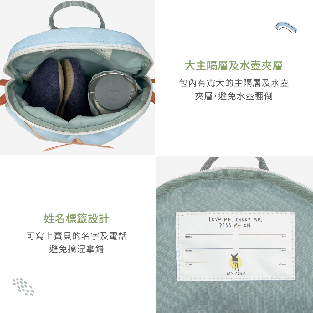‧包內有寬大的主隔層及水壺夾層,避免水壺翻倒,姓名標籤設計避免搞混拿錯。